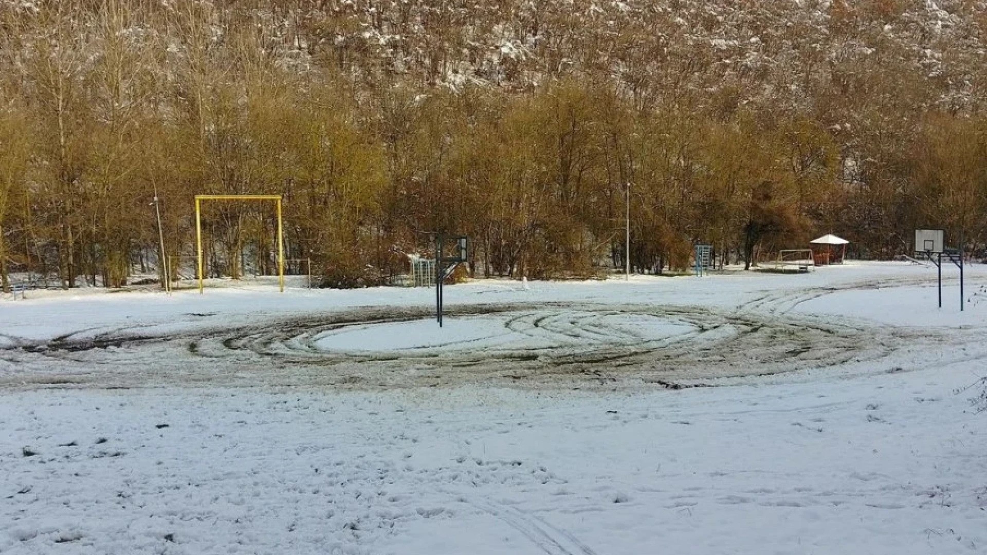 Става въпрос за игрище в района на лесопарк “Пчелина”, край Разград, който е любимо място за отдих на малки и големи. Дълбоки коловози от гуми си виждат между баскетболните игрища.